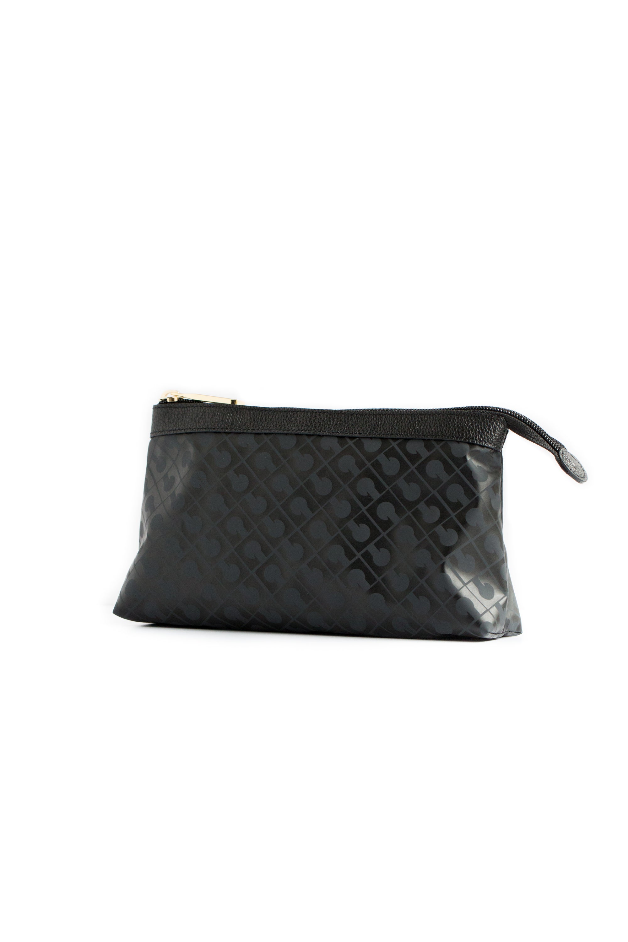 Bolsa pequeña de material Softy que puede tener variedad de usos como cosmetiquera, pasaportera. Tiene cremallera que tieneherrajes en color negro y vista en piel.Bolsa medida 13x25x5 cm